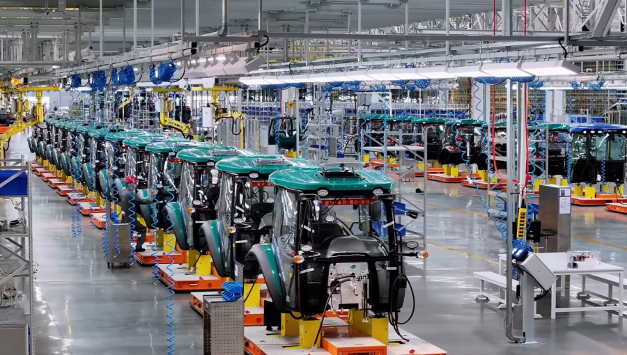 На интеллектуальном заводе LOVOL роботизированные руки выполняют более 80 взаимосвязанных операций по сборке рам. В среднем, каждые 5 минут с конвейера сходит один трактор высокой мощности.